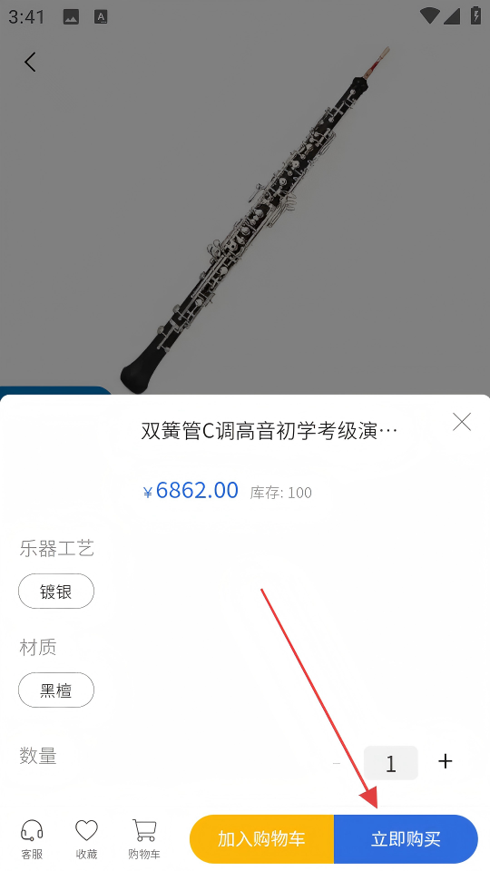 3、在彈出的規(guī)格彈窗中,確認【鍍銀-黑檀】工藝材質及數(shù)量,點擊【立即購買】。