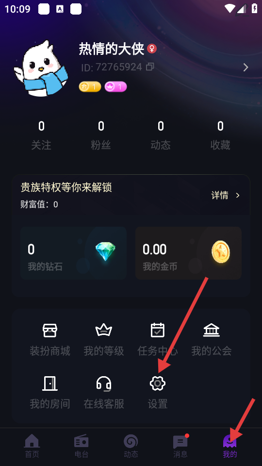 1、打開(kāi)APP,點(diǎn)擊底部【我的】選項(xiàng),進(jìn)入個(gè)人頁(yè)面后,點(diǎn)擊【設(shè)置】按鈕。