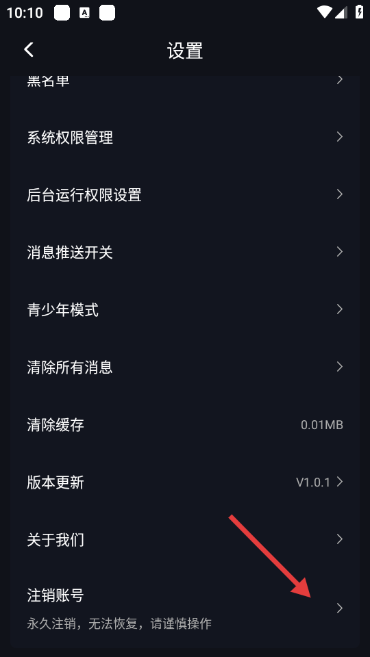 2、在設(shè)置頁(yè)面,找到并點(diǎn)擊【注銷(xiāo)賬號(hào)】選項(xiàng),進(jìn)入注銷(xiāo)賬號(hào)風(fēng)險(xiǎn)提示頁(yè)面。