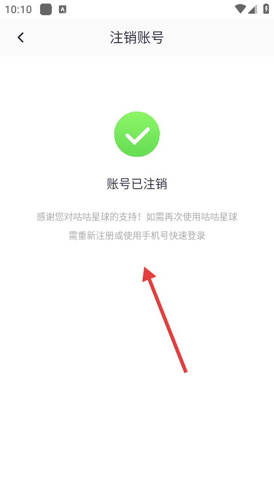 4、完成上述操作后,賬號(hào)即可成功注銷(xiāo),頁(yè)面會(huì)顯示“賬號(hào)已注銷(xiāo)”提示。