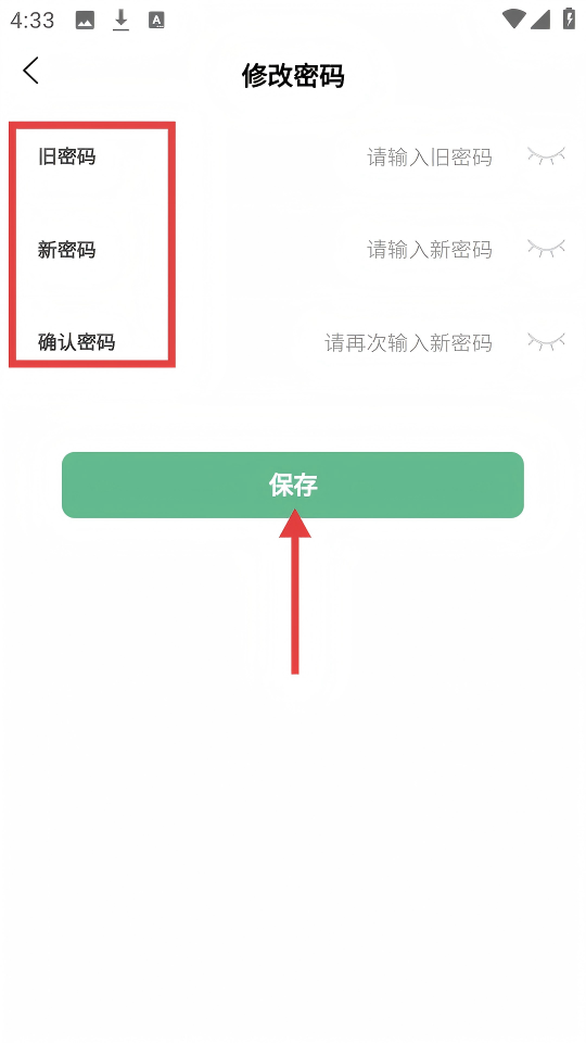 4、在修改密碼頁面,輸入【舊密碼】【新密碼】【確認(rèn)密碼】后,點(diǎn)擊【保存】,可完成密碼修改。