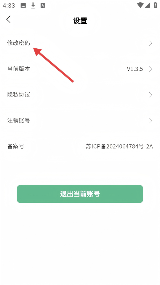 3、在設(shè)置頁面,點(diǎn)擊【修改密碼】,可進(jìn)入修改密碼頁面。