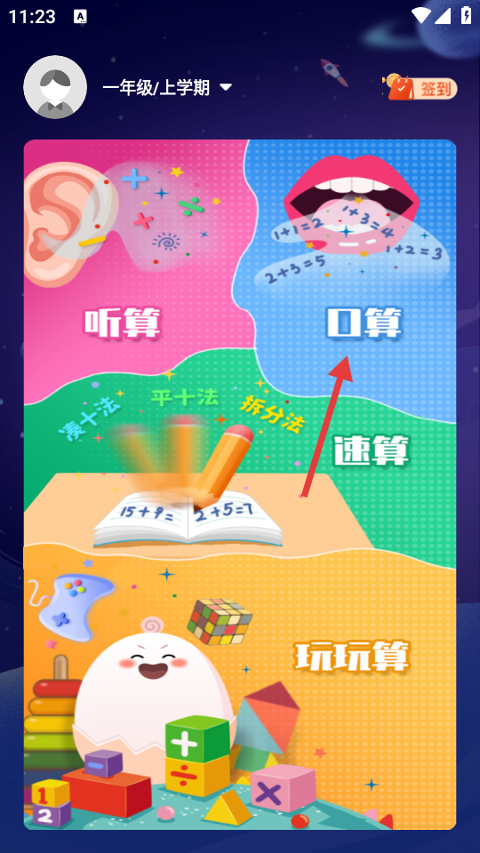 1、打開(kāi)APP,在主頁(yè)面選擇【口算】板塊,進(jìn)入口算練習(xí)界面。