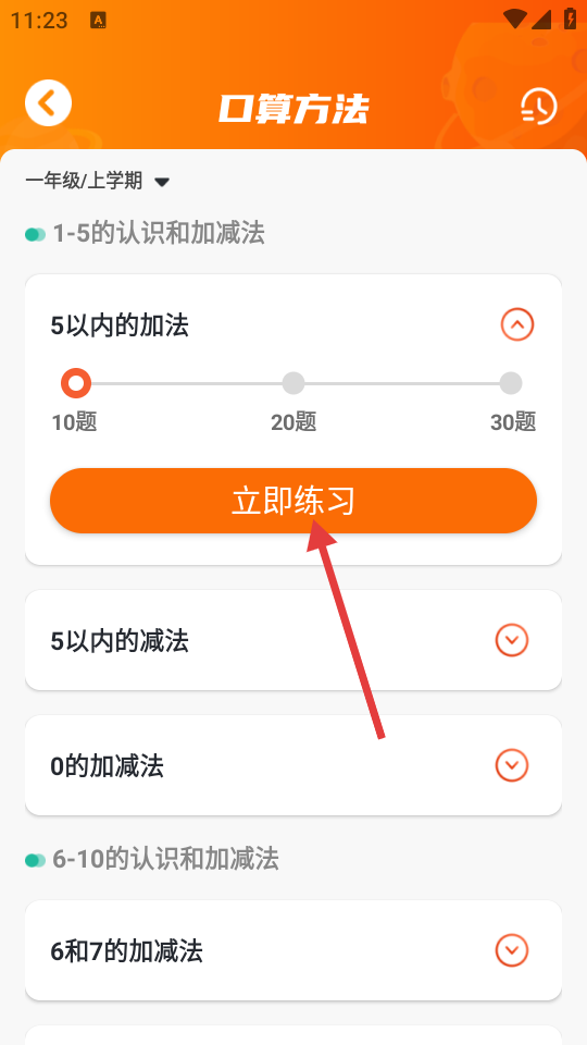 2、在口算練習(xí)界面,點(diǎn)擊選擇【立即練習(xí)】。