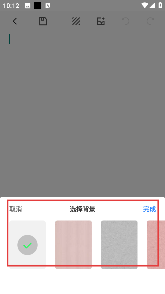 3、在新建筆記編輯頁面,彈出選擇背景彈窗,挑選喜歡的背景樣式后,點擊【完成】,應(yīng)用所選背景。