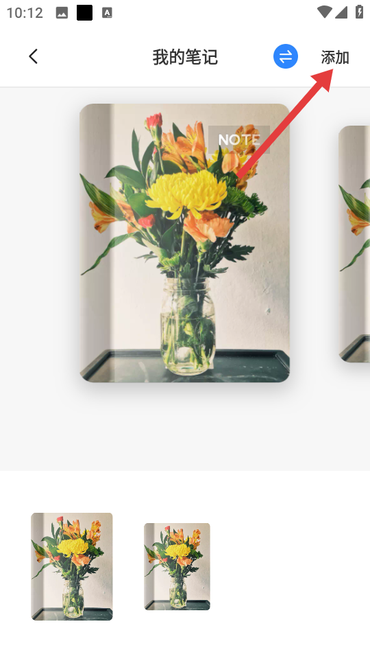 2、在我的筆記頁面,可查看已有筆記,點擊右上角【添加】,進入新建筆記的編輯頁面。