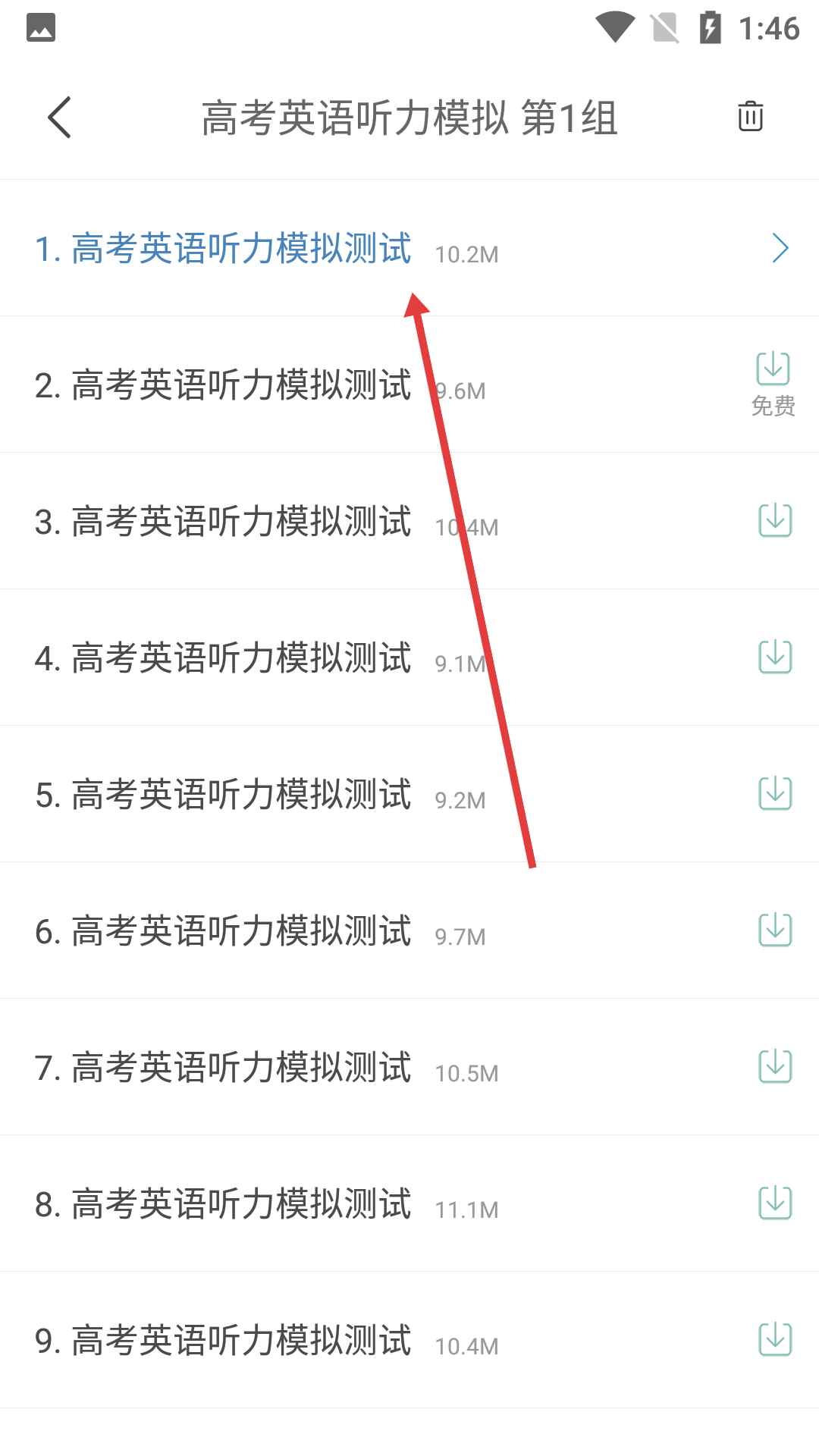 3、進(jìn)入后,點擊【1.高考英語聽力模擬測試】選項,進(jìn)入測試題頁面。