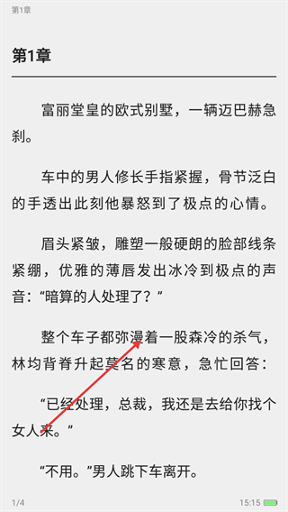 4、點(diǎn)擊【開始閱讀】,進(jìn)入小說閱讀界面,開始閱讀第一章文字內(nèi)容。