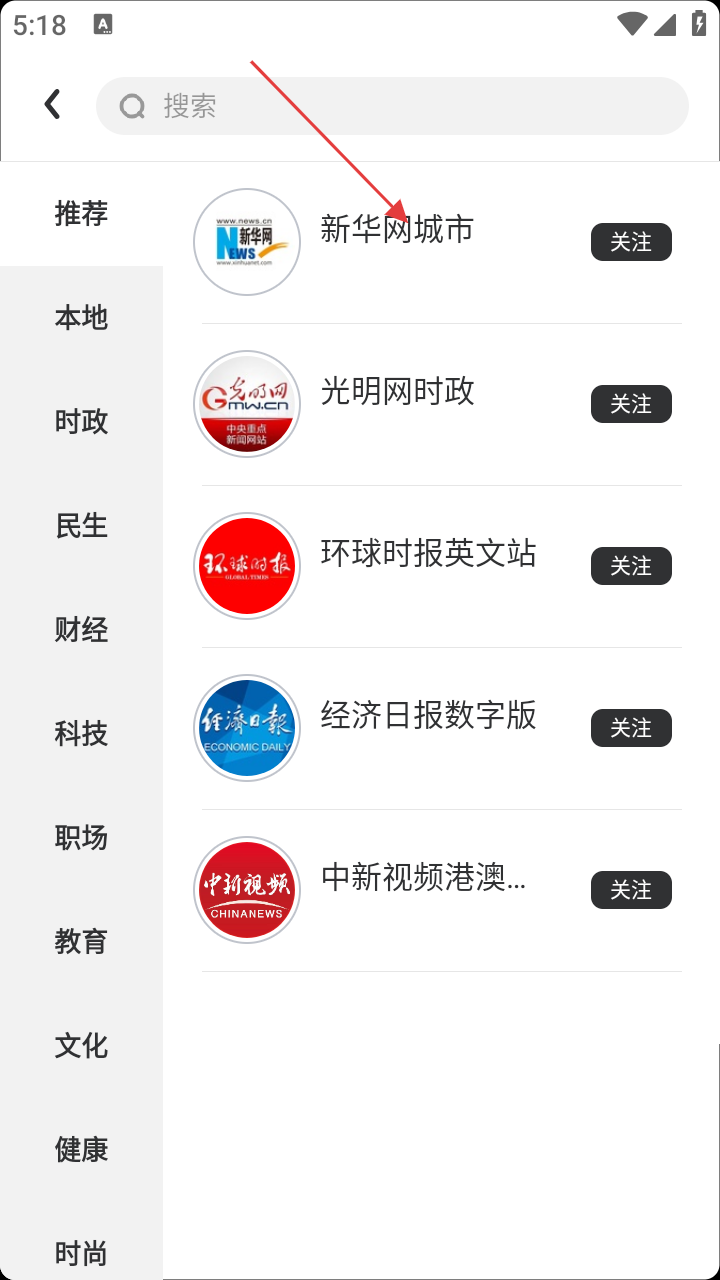 3、在推薦列表中,有新華網城市、光明網時政等選項,點擊【新華網城市】。