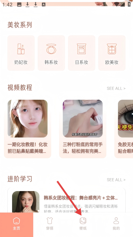 1、在應(yīng)用主頁,點(diǎn)擊底部導(dǎo)航欄的【壁紙】按鈕。