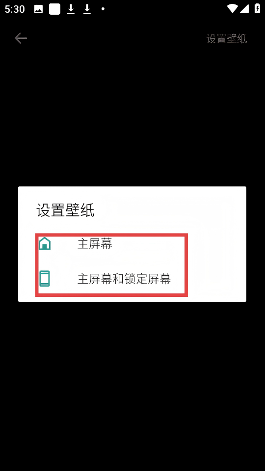 4、在【設(shè)置壁紙】彈窗中,選擇【主屏幕】或【主屏幕和鎖定屏幕】以完成壁紙設(shè)置。