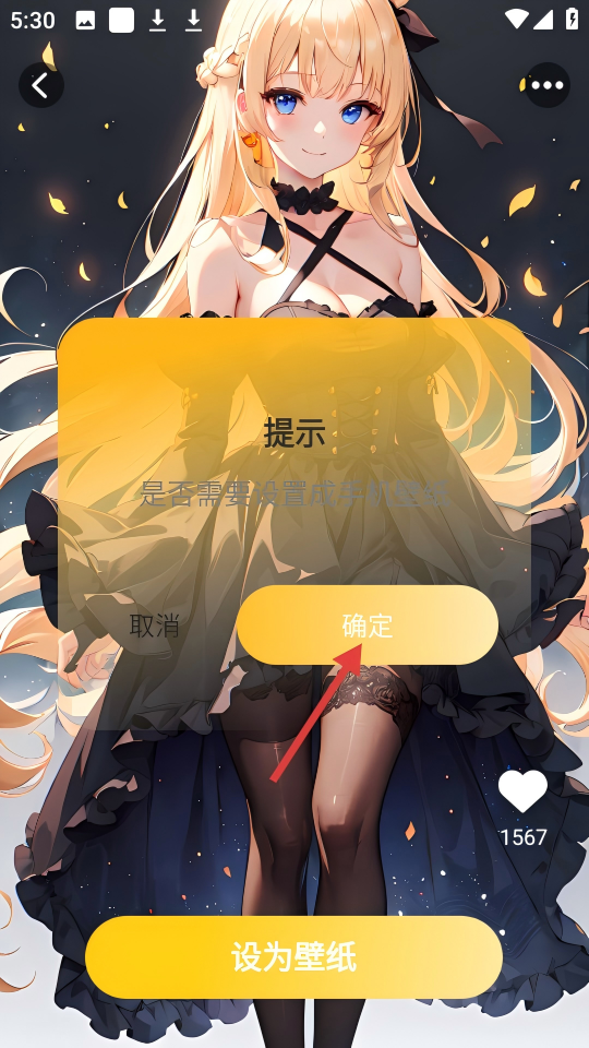 2、進入壁紙詳情頁后,點擊黃色的【設(shè)為壁紙】按鈕。
