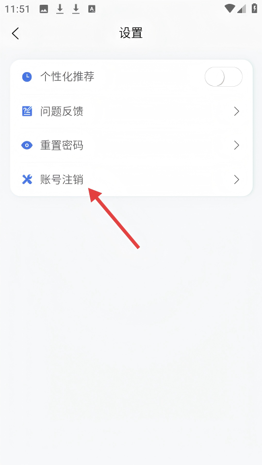 3、在設(shè)置頁(yè)面,點(diǎn)擊【賬號(hào)注銷】選項(xiàng),進(jìn)入注銷賬號(hào)頁(yè)面。