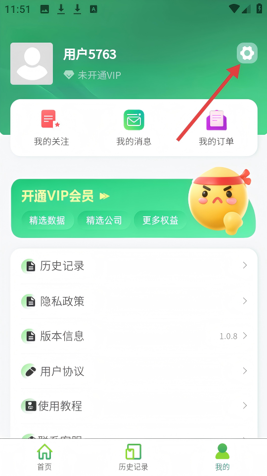 2、在【我的】頁(yè)面,點(diǎn)擊右上角的設(shè)置圖標(biāo),進(jìn)入設(shè)置頁(yè)面。