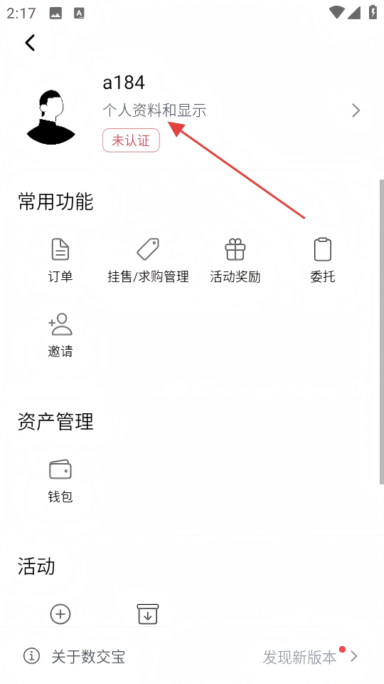 2、在個人操作頁面,點擊【個人資料和顯示】區(qū)域,進(jìn)入用戶中心界面。