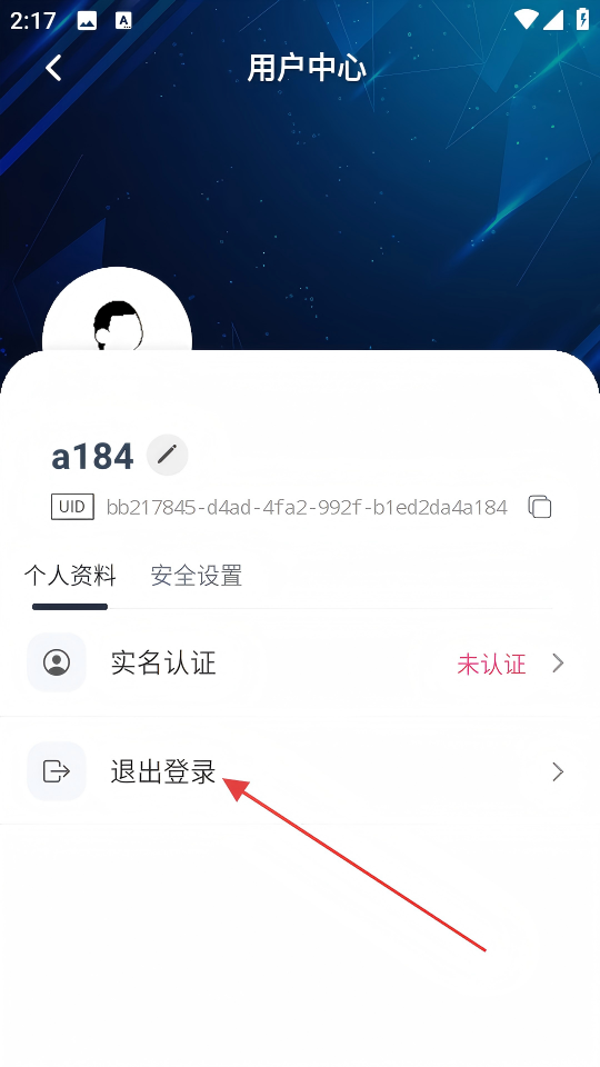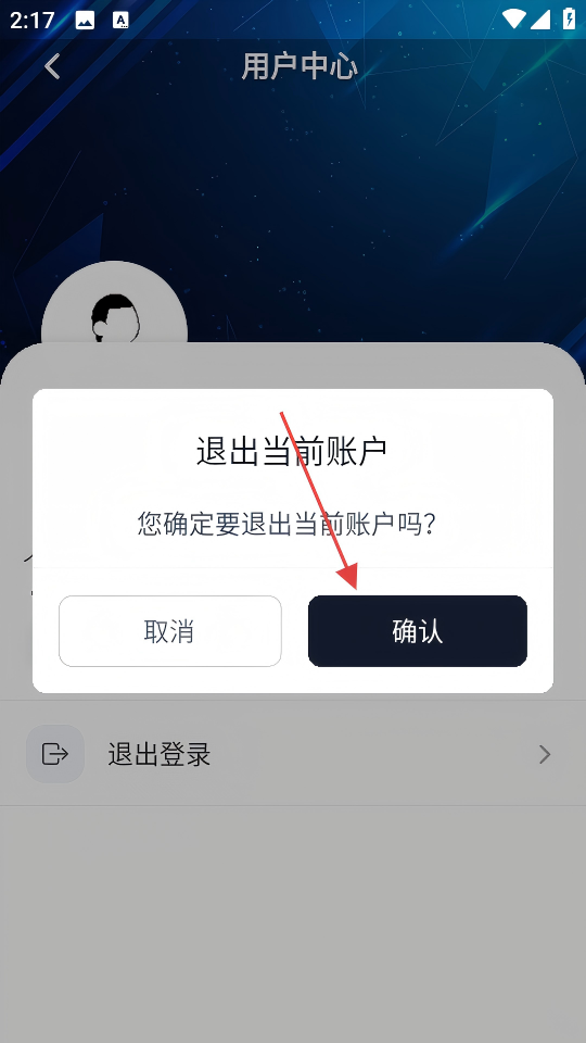 3、在用戶中心界面,點擊【退出登錄】選項,彈出退出賬戶的確認(rèn)彈窗。