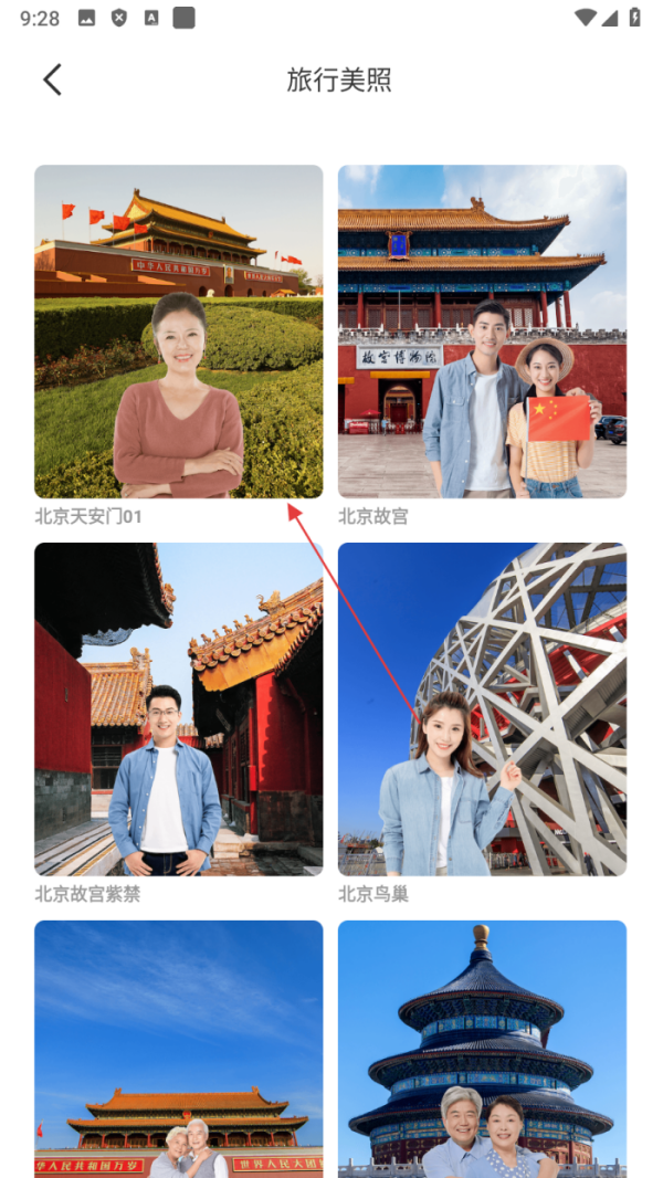 1、在分類展示頁面,點擊【旅行美照】分類,進(jìn)入旅行美照模板列表頁面。