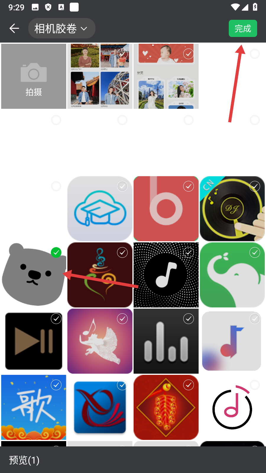 3、在相機膠卷界面【選擇好圖片后】,點擊右上角【完成】,進(jìn)入圖片編輯界面。