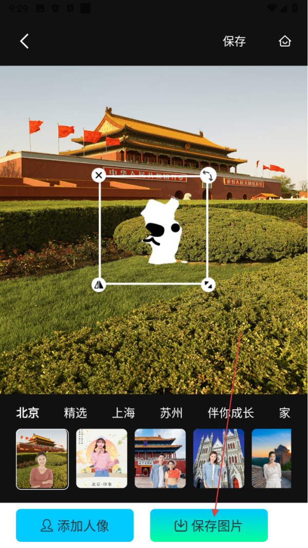 4、在圖片編輯界面調(diào)整好內(nèi)容,點擊【保存圖片】,即可完成照片的制作與保存。