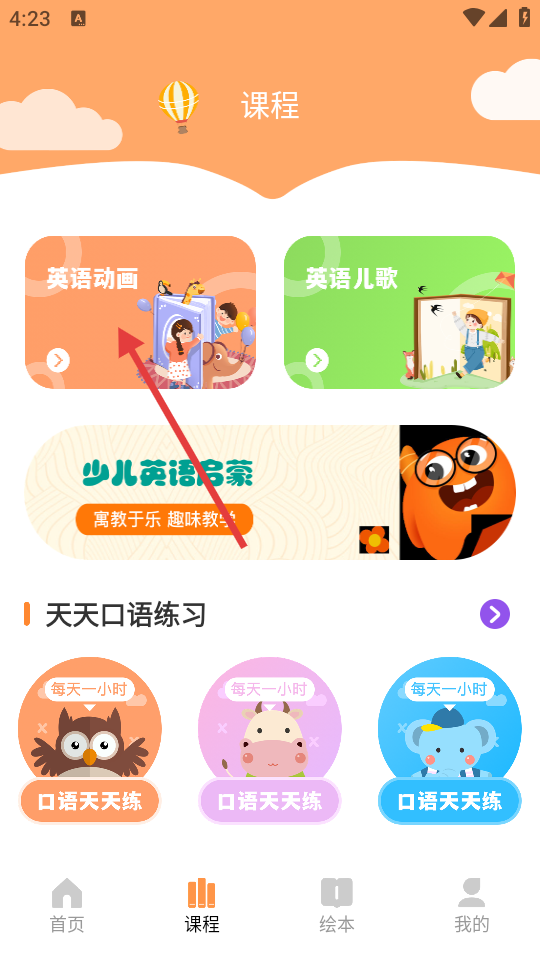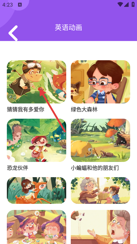 2、在課程頁面,點擊【英語動畫】板塊,進入英語動畫選擇界面。