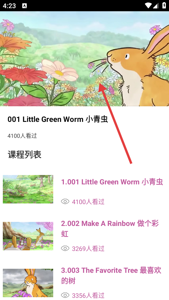 3、在英語動畫選擇界面,挑選目標動畫,如【猜猜我有多愛你】,點擊進入該動畫課程頁面。