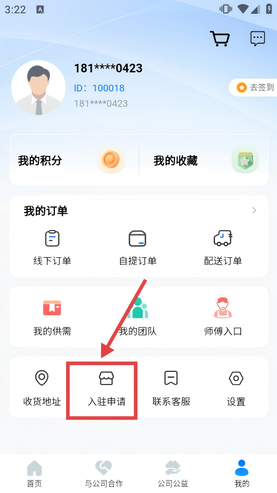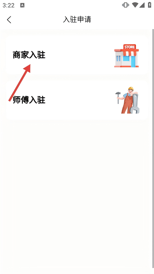 2、在個人頁面點擊【入駐申請】,進入入駐類型選擇頁。