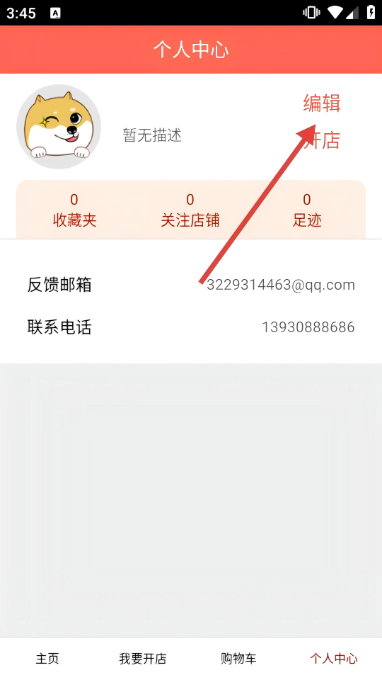 2、在個(gè)人中心頁(yè)面點(diǎn)擊【編輯】,進(jìn)入登錄界面。