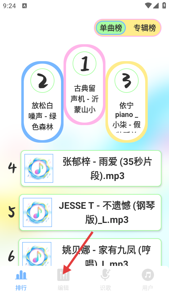 2、在排行頁面,點擊底部導(dǎo)航欄的【編輯】,進(jìn)入編輯功能選擇頁面。