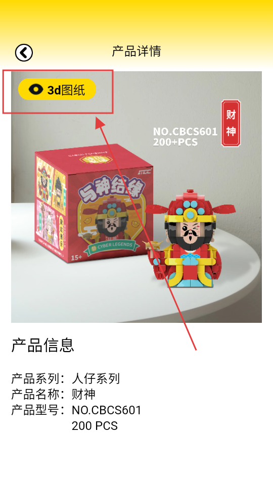 1、在產(chǎn)品詳情頁,看到【3d圖紙】按鈕,點擊它就能進入3D搭建頁面,查看搭建步驟啦。
