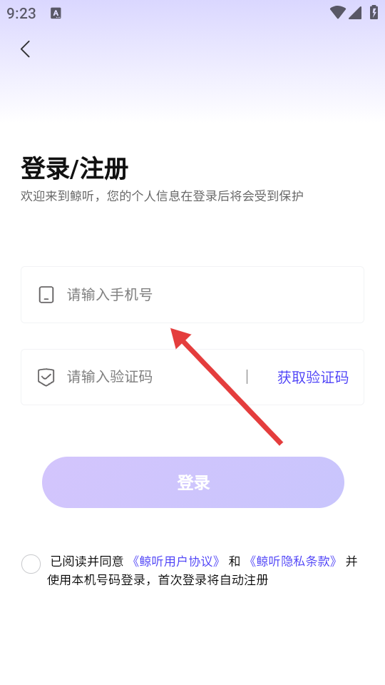 1、在登錄/注冊頁面,輸入手機號,獲取并輸入驗證碼,勾選同意相關(guān)協(xié)議后,點擊【登錄】按鈕。