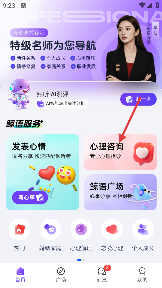 鯨聽是一款專注于心理健康領(lǐng)域的專業(yè)咨詢服務(wù)工具,通過在線即時通訊方式連接持有資質(zhì)證書的心理咨詢師與需要幫助的群體。平臺涵蓋婚姻家庭、情緒管理、職業(yè)發(fā)展等多個咨詢方向,支持文字與語音多種溝通形式。所有咨詢師均經(jīng)過嚴(yán)格審核并公示執(zhí)業(yè)背景,采用全程加密技術(shù)保障對話隱私安全。提供自主選擇咨詢師和匿名傾訴等功能,讓心理支持服務(wù)變得更加便捷可靠,適合不同需求的群體隨時獲取專業(yè)指導(dǎo)。