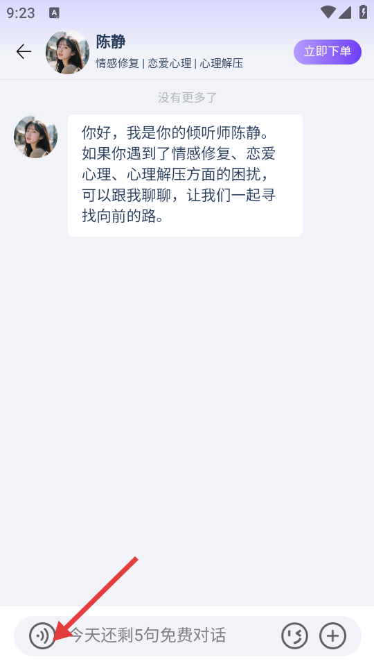 4、進入與咨詢師的聊天頁面后,點擊底部輸入框,可進行交流傾訴。
