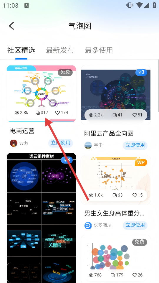3、在氣泡圖頁(yè)面,挑選【電商運(yùn)營(yíng)】相關(guān)的氣泡圖模板。