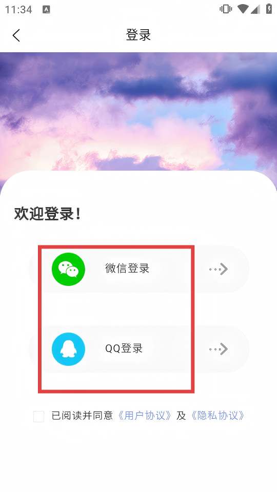 4、在登錄頁面,選擇【微信登錄】或【QQ登錄】,勾選協(xié)議后完成登錄,即可進(jìn)行抑郁測試。