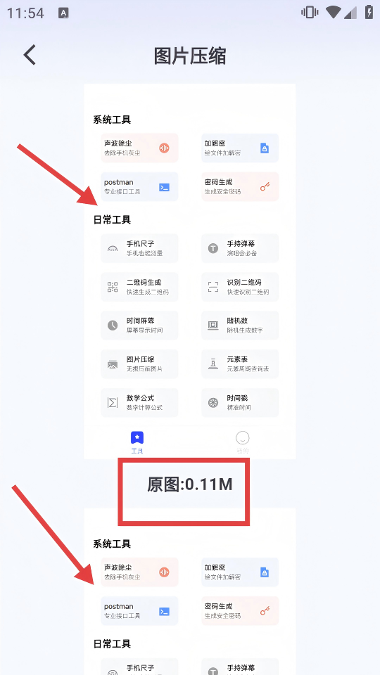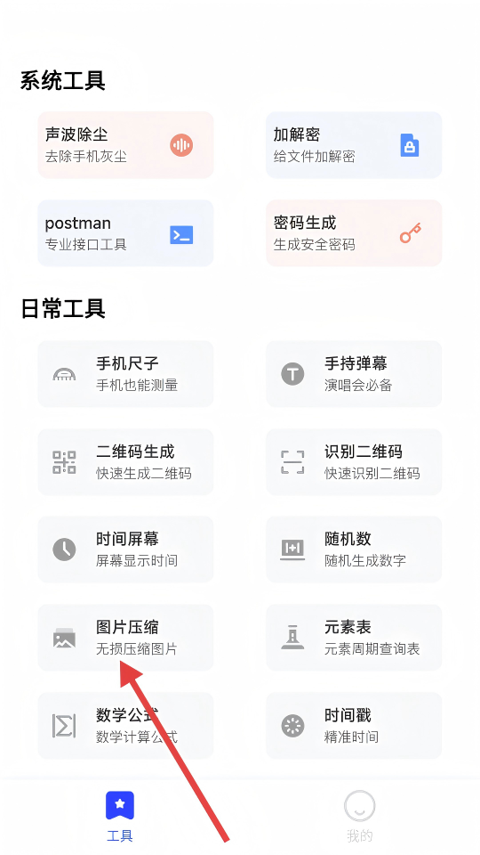 1、在工具頁面的“日常工具”板塊,點擊【圖片壓縮】,進入圖片壓縮界面。