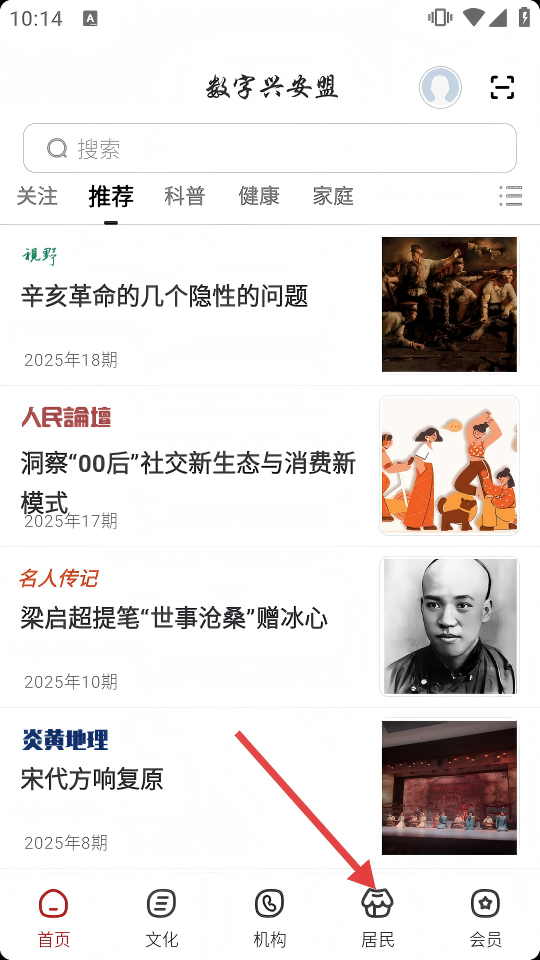 1、打開“數(shù)字興安盟”APP,點擊底部【居民】,進入居民服務頁面。