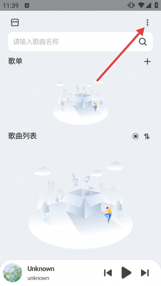 1、打開音樂APP,點(diǎn)擊界面右上角三點(diǎn)圖標(biāo),進(jìn)入“更多”設(shè)置頁面。