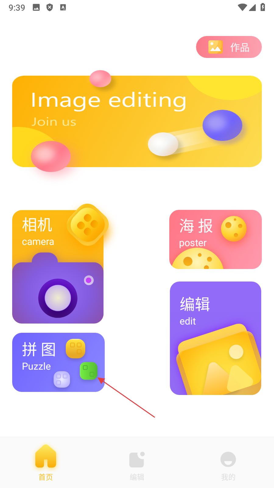 1、點(diǎn)擊【拼圖】,進(jìn)入圖片選擇頁面。