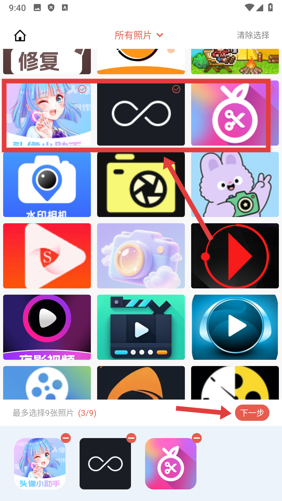 2、在圖片選擇頁面,【選擇圖片】后點(diǎn)擊【下一步】,進(jìn)入圖片拼接頁面。