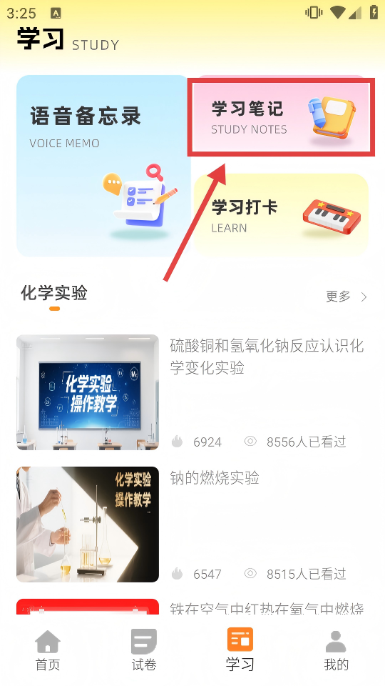 2、在學習頁面,點擊【學習筆記】,進入“我的筆記”頁面。
