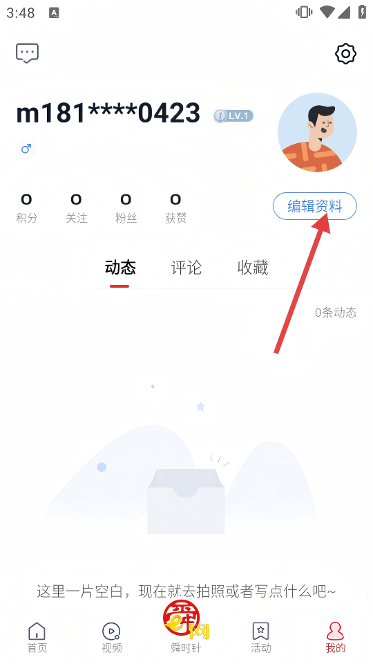 2、在個(gè)人頁面,點(diǎn)擊【編輯資料】,進(jìn)入編輯個(gè)人信息頁面。