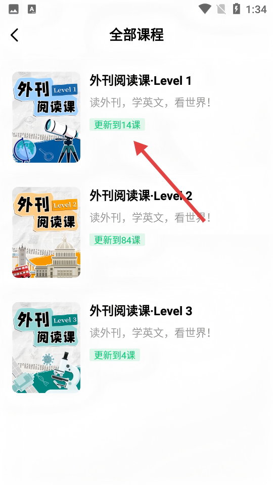 2、進(jìn)入【全部課程】頁面,選對應(yīng)級別課程進(jìn)入。