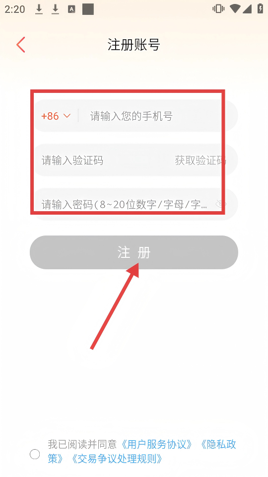 4、在注冊賬號頁面,填寫【手機(jī)號】,獲取并填寫【驗(yàn)證碼】,設(shè)置密碼,勾選協(xié)議后點(diǎn)擊【注冊】,即可完成賬號注冊。
