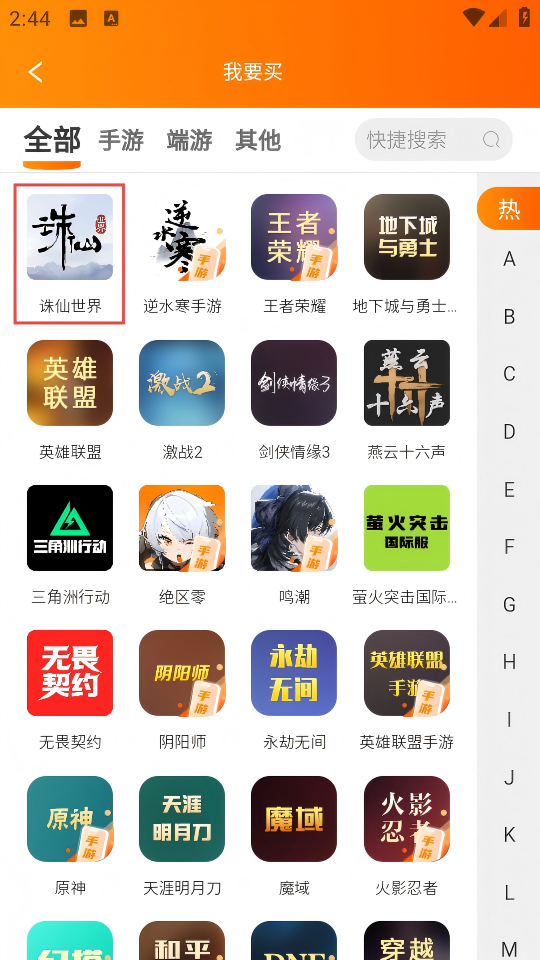 2、在“我要買”頁面選擇目標(biāo)游戲,進(jìn)入該游戲的賬號列表頁面。