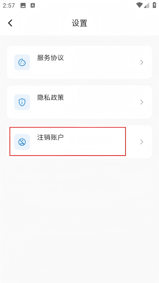 3、在設(shè)置頁面點(diǎn)擊【注銷賬戶】,進(jìn)入頁面。