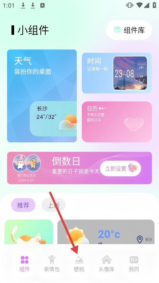 1、進(jìn)入軟件后,點擊底部【壁紙】選項進(jìn)入相關(guān)頁面。