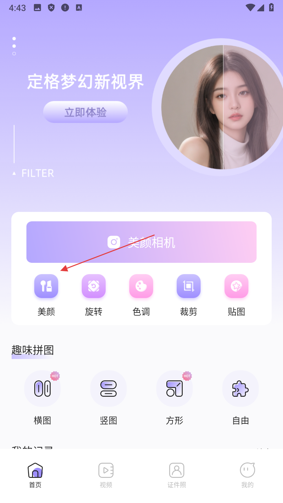 1、點(diǎn)擊【美顏】,進(jìn)入選擇素材頁(yè)面。