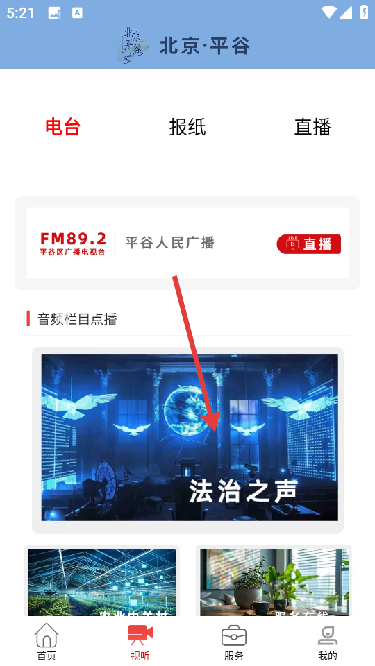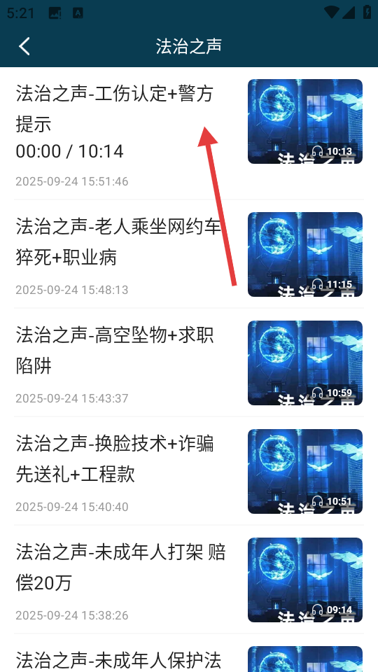 2、在視聽頁面,點(diǎn)擊【法治之聲】板塊,進(jìn)入法治之聲列表頁面。