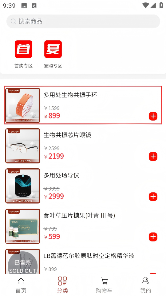 2、在分類(lèi)頁(yè)面,選擇【多用處生物共振手環(huán)】商品,進(jìn)入其詳情頁(yè)面。