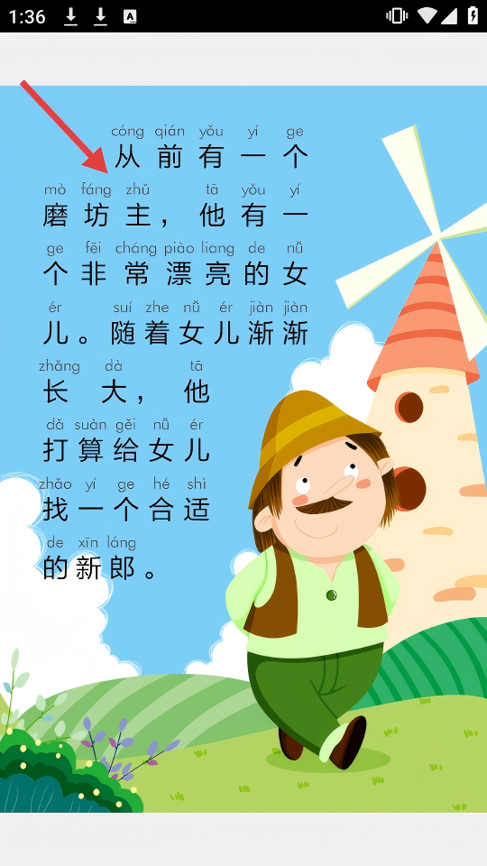 4、進(jìn)入【繪本閱讀】后,能看到帶拼音的文字內(nèi)容,可進(jìn)行識(shí)字與閱讀練習(xí),助力閱讀學(xué)習(xí)。